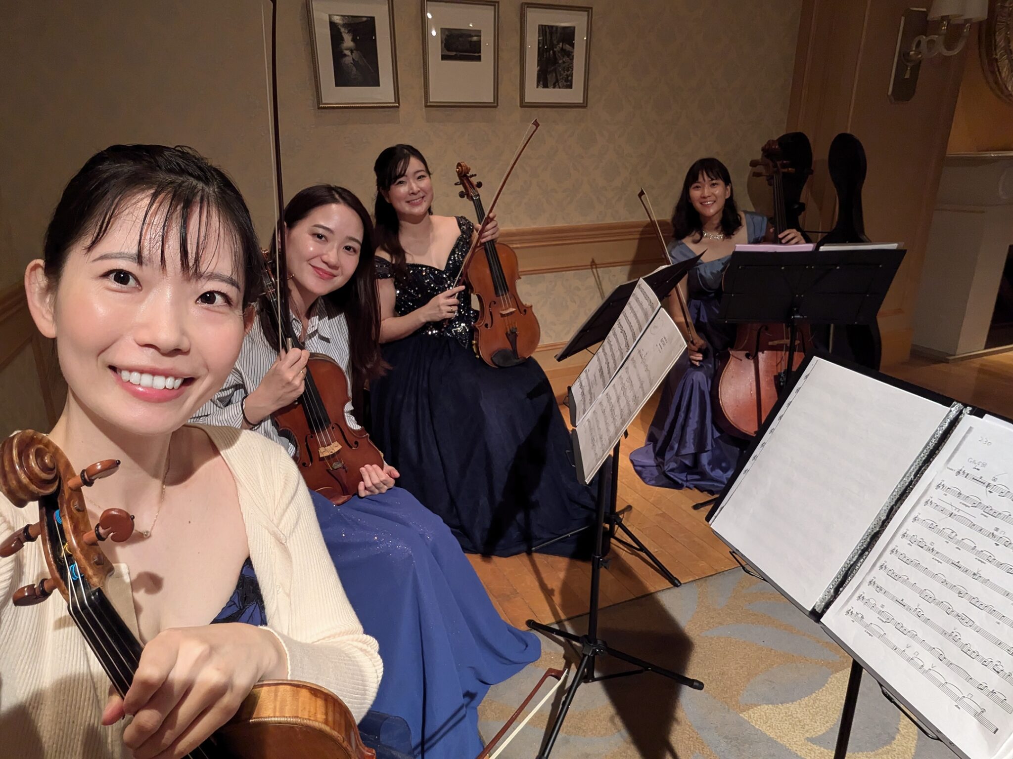 素敵なパーティーにて、 メイン会場の準備ができるまでの待機時間に、演奏をさせていただきました✨️ 弦楽四重奏で モーツァルトのアイネクライネやディペルディメントなど、トータル50分演奏させていただきました! ご歓談中のB […]
