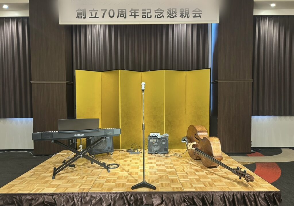 また、基本的に会議を行う会場様なので、生演奏を行う音響環境にはなく、機材類も最低限で演奏できる編成をご提案致しました。