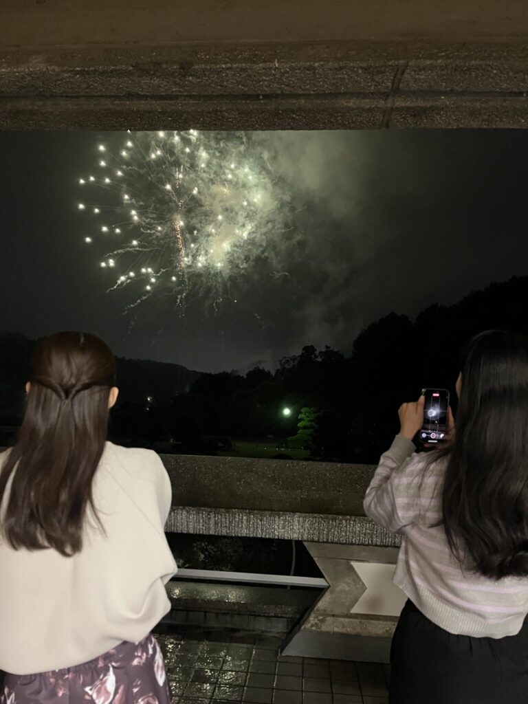 暗譜で歩きながら演奏した尺八とヴァイオリンへの労いに花火も見せていただきました。