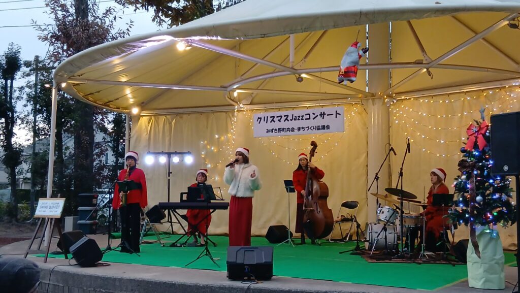 【Swing Quintet】ボーカル・サックス・ピアノ・ウッドベース・ドラム 町内会様クリスマスジャズライブ 地域活性化企画・まちづくり
