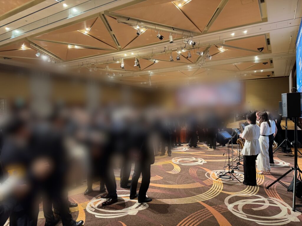 立食パーティーでしたので、お名刺交換や歓談がメインな中、生演奏に耳を傾けてくださるお客様も多くいらっしゃいました。